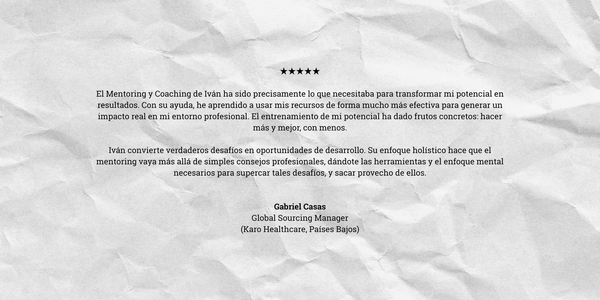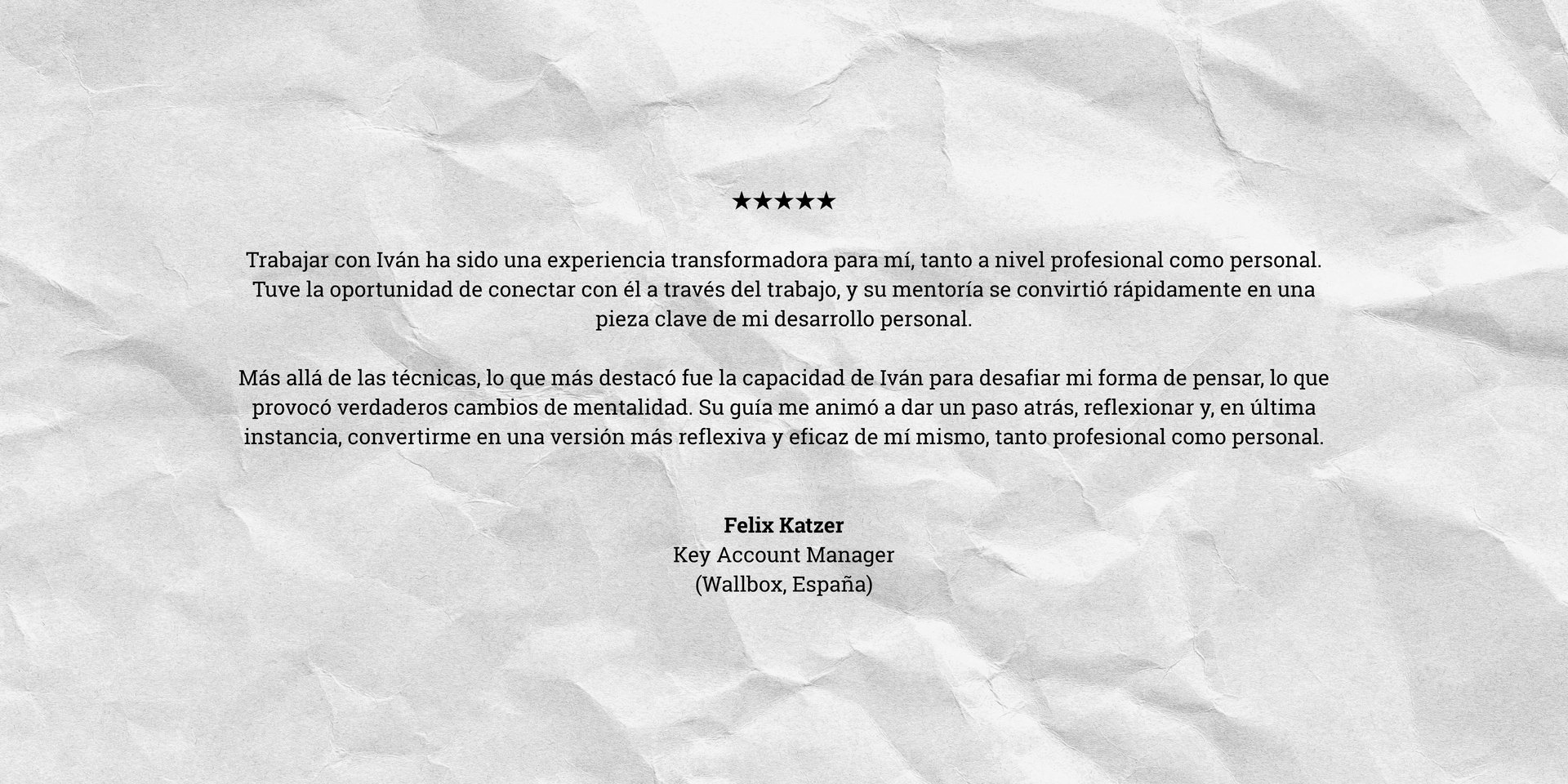 Más allá de las técnicas, lo que más destacó fue la capacidad de Iván para desafiar mi forma de pensar, lo que provocó verdaderos cambios de mentalidad. Su guía me animó a dar un paso atrás, reflexionar y, en última instancia, convertirme en una versión más reflexiva y eficaz de mí mismo, tanto profesional como personal.